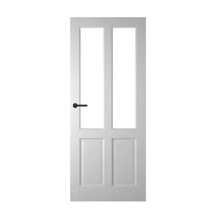 Houten binnendeur met elegante facetprofilering die moeiteloos past bij zowel moderne als klassieke interieurs. Leverbaar met blank, mat of mat gelaagd glas, eventueel met een subtiel facetgeslepen rand. Standaard wit gegrond en af te werken in elke gewenste kleur. Prijs exclusief glas, beslag en hang en sluitwerk.