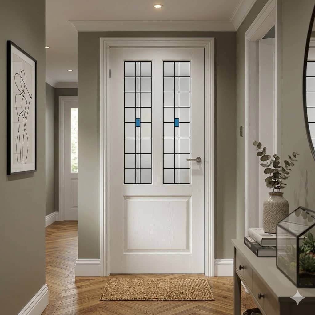 Houten binnendeur met elegante facetprofilering die moeiteloos past bij zowel moderne als klassieke interieurs. Leverbaar met blank, mat of mat gelaagd glas, eventueel met een subtiel facetgeslepen rand. Standaard wit gegrond en af te werken in elke gewenste kleur. Prijs exclusief glas, beslag en hang en sluitwerk.