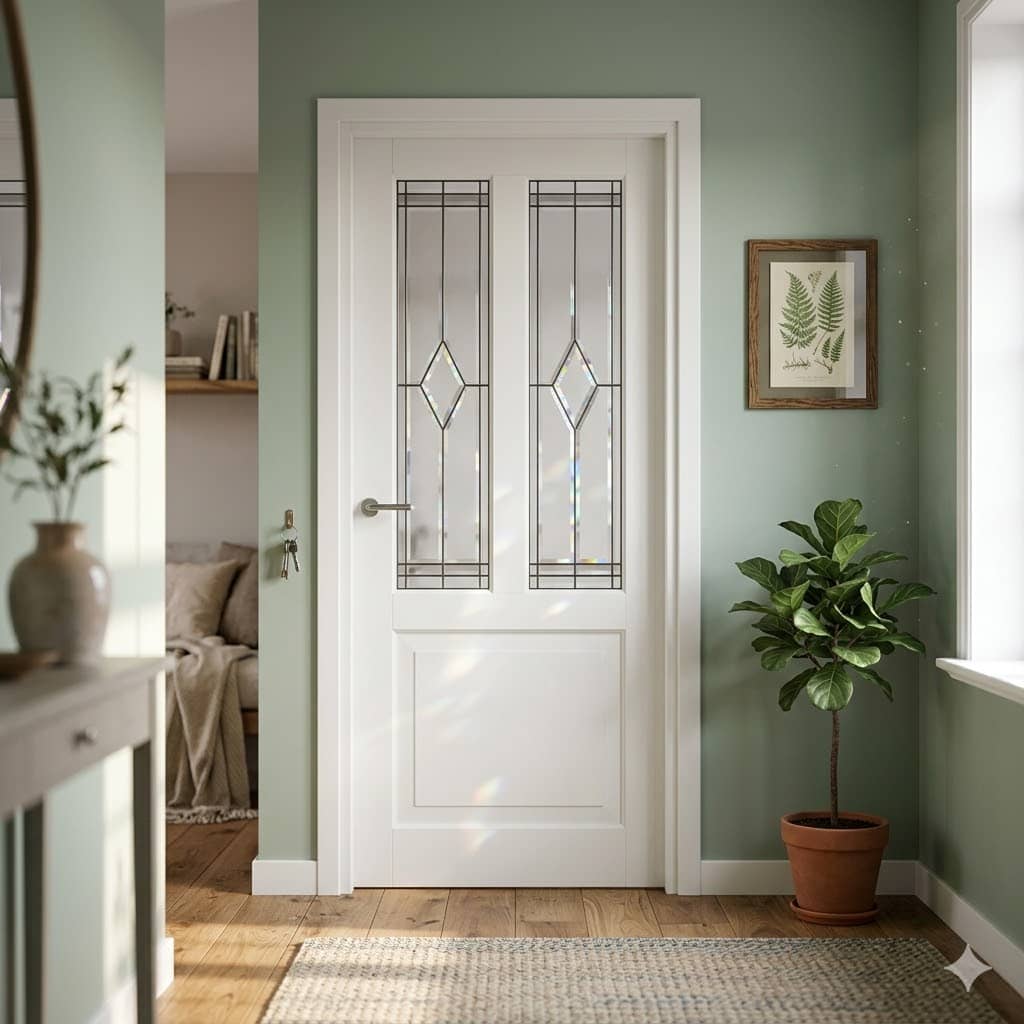 Houten binnendeur met elegante kraalprofilering, herkenbaar aan de subtiel ronde lijnen van dit populaire klassieke profiel. Verkrijgbaar met diverse glassoorten zoals facetgeslepen glas, figuurglas en glas in lood. Standaard wit gegrond en af te werken in elke gewenste kleur. Prijs exclusief glas, beslag en hang en sluitwerk.