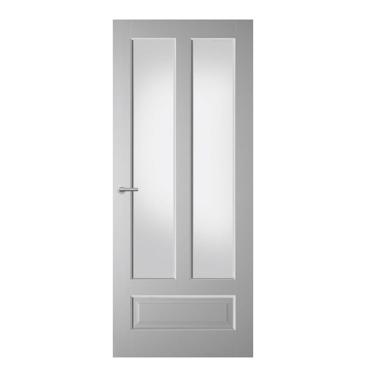 Houten binnendeur met elegante kraalprofilering, herkenbaar aan de subtiel ronde lijnen van dit populaire klassieke profiel. Verkrijgbaar met diverse glassoorten zoals facetgeslepen glas, figuurglas en glas in lood. Standaard wit gegrond en af te werken in elke gewenste kleur. Prijs exclusief glas, beslag en hang en sluitwerk.