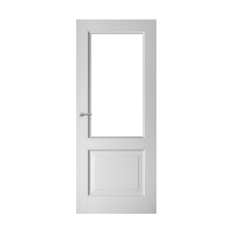 Houten binnendeur met een klassieke ojiefprofilering, ideaal voor interieurs met een ambachtelijke of landelijke uitstraling. Verkrijgbaar met diverse glassoorten, zoals facetgeslepen glas en glas in lood. Standaard wit gegrond en af te lakken in elke gewenste kleur. Prijs exclusief glas, beslag en hang en sluitwerk.