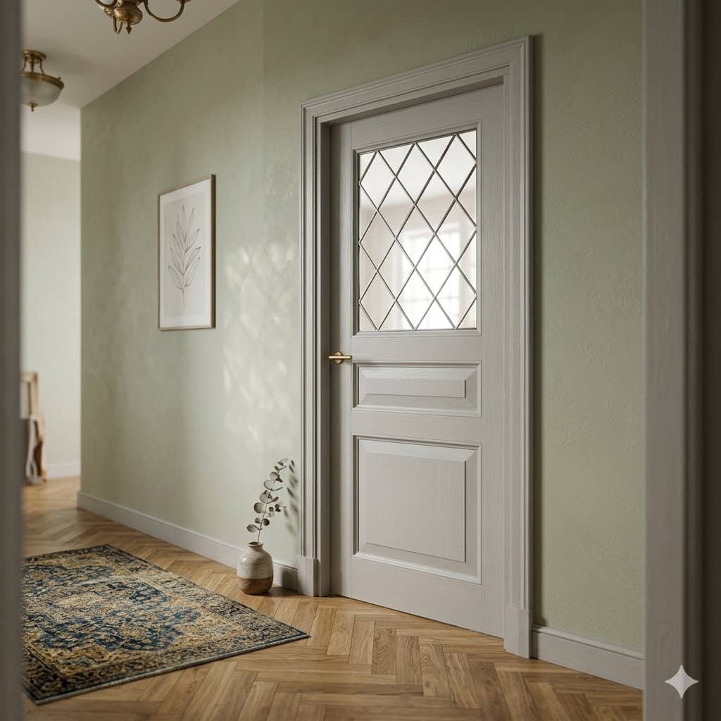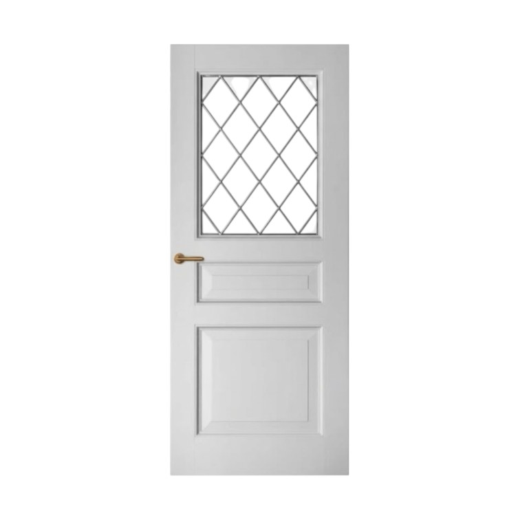 Houten binnendeur met een klassieke ojiefprofilering, ideaal voor interieurs met een ambachtelijke of landelijke uitstraling. Verkrijgbaar met diverse glassoorten, zoals facetgeslepen glas en glas in lood. Standaard wit gegrond en af te lakken in elke gewenste kleur. Prijs exclusief glas, beslag en hang en sluitwerk.